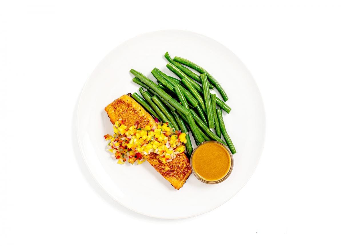 Savor our “Chipotle-Maple Glazed Salmon”, featuring with Green Beans & Mango Pico de Gallo. Created by Chef Ruben Garcia, it boasts an impressive 4.34-star rating and around 580 kcal per serving.. Please note it contains or may contain: Fish Each order includes a pack of 4 meals.